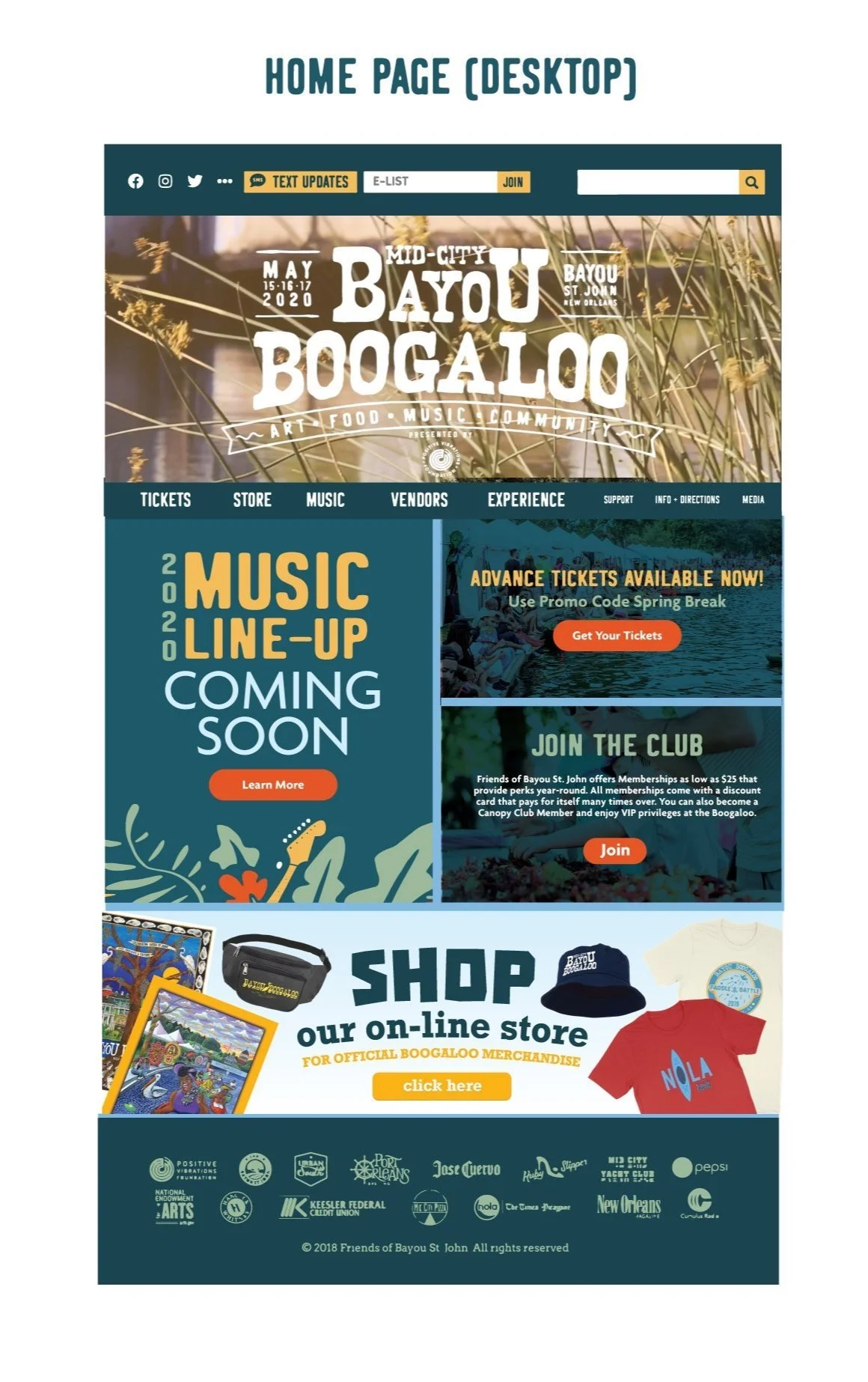 I created web assets for the festival. In 2020, I updated our website, introducing new colors/ imagery, and creating these mockups for desktop and mobile.